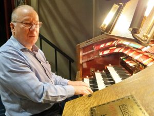 It is played from the original 3 manual Môller Pipe Organ Console.